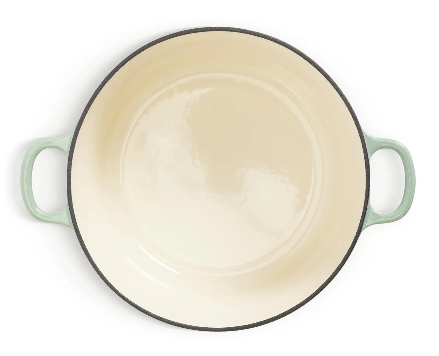 Feast your eyes on our enamel coated, cast iron casserole dish. It'll be your go to pot for all sorts of meals as it cooks evenly and retains heat for longer. Looks good too. In fact, it's handsome enough to take straight from the oven to the table.