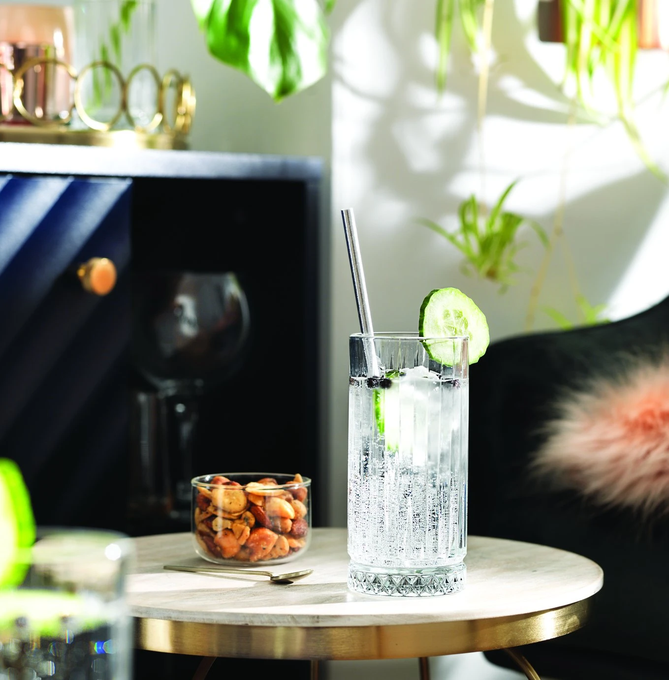 Pour it tall and have a ball. These 4 Hi Ball glasses are a must have for your drinks cabinet. They're class in a glass and the height of retro chic. Perfect for pouring a long tall cocktail over ice. Or adding a splash of style to your mineral water, or even jazzing up your juice. The cut glass design is not only elegant it makes it easy to grip as well. Simple to keep sparkling clean, just pop in your dishwasher. Loving the vintage vibe? Take a look at the rest of our gorgeous glassware. Bottoms up!