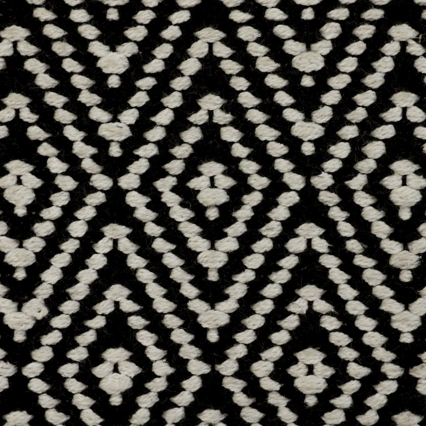 Beautifully textured, this Durrie cosy, natural woven cotton footstool is perfect for lounging. Put up your feet and kickback. Got friends over, then you've got a perfect extra perch at the ready. An inspired and multifunctional choice for any home. With the repeating diamond pattern in the black and white 100% cotton weave, our pouffe has a truly artisan feel.