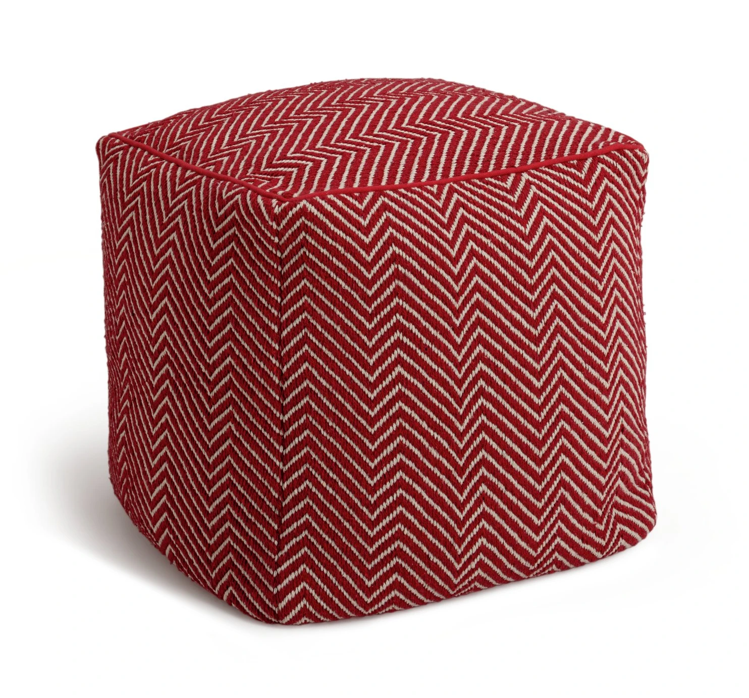 Beautifully textured, this Durrie cosy, natural woven cotton footstool is perfect for lounging. Put up your feet and kickback. Got friends over, then you've got a perfect extra perch at the ready. An inspired and multifunctional choice for any home. With a repeating zig zag pattern in the red and white 100% cotton weave, our pouffe has a truly artisan feel.