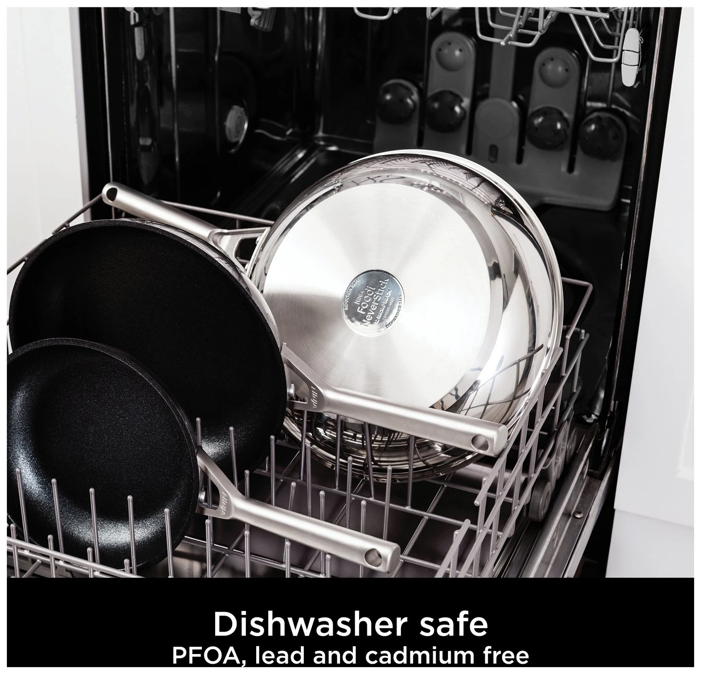 This sleek saute pan is expertly crafted from polished stainless steel with an aluminium core for even heat distribution and excellent high-heat searing. Durable and long-lasting, Ninja ZEROSTICK Technology combines ultra high-heat plasma ceramic bonding with a unique non-stick coating – zero chip, flake or peel. Dishwasher safe, scratch resistant and metal utensil safe. Oven safe and suitable for all hob types, including induction, you can start your creation on the hob and finish in the oven. PFOA, lead and cadmium free.