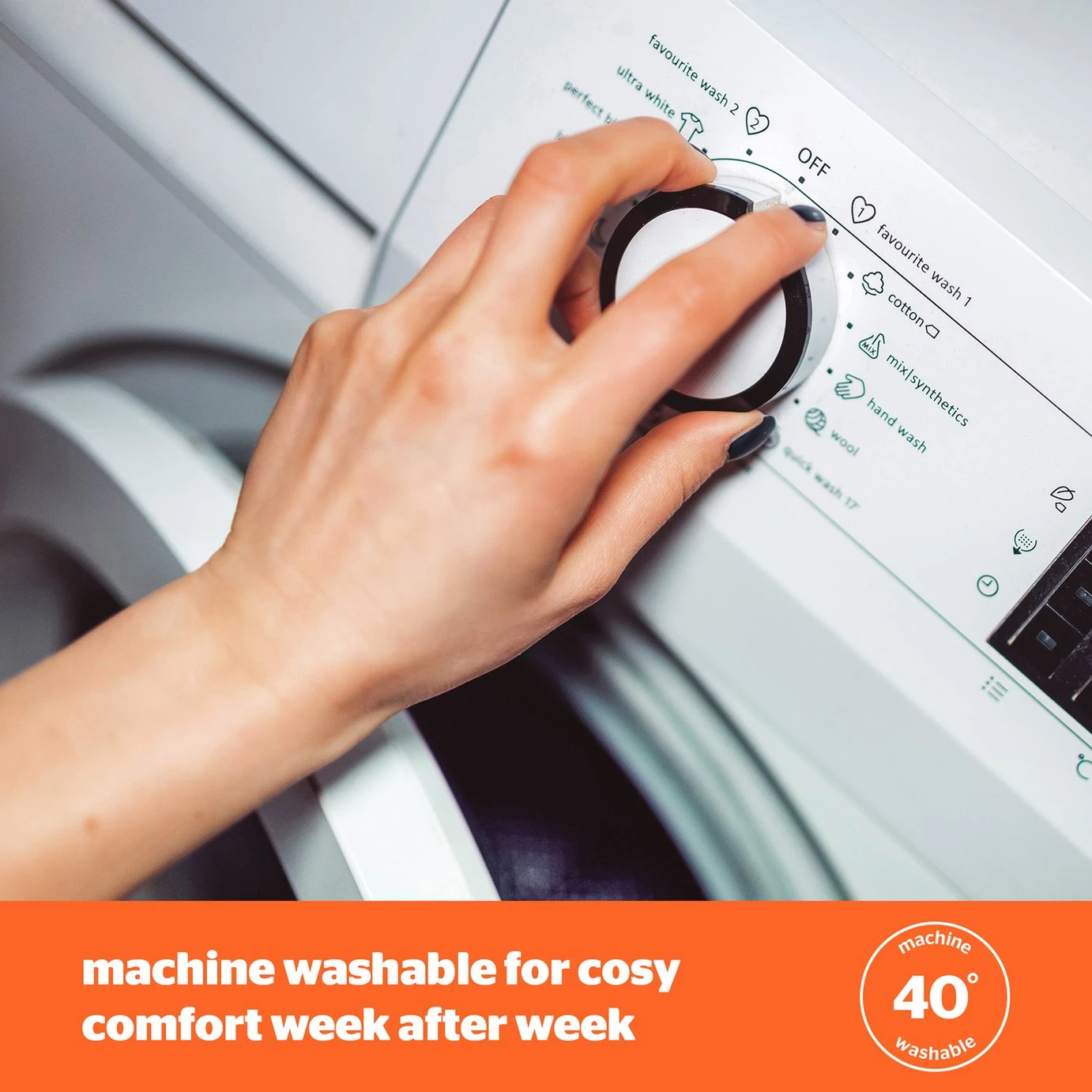 - Machine washable at 40C.