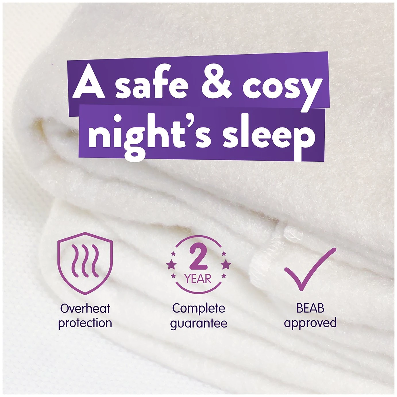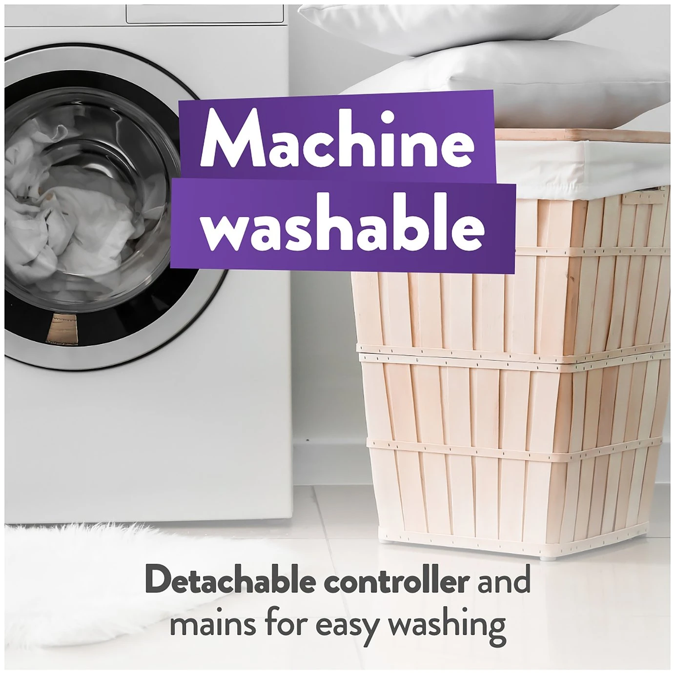 Keep your toes toasty with the Slumberdown Essentials electric blanket. It easily attaches with corner straps to a small double bed, and with 3 settings you can achieve the perfect temp for your cosy cocoon to curl up in. Conveniently, it's machine washable and has low energy consumption with auto shut off, giving you peace of mind.