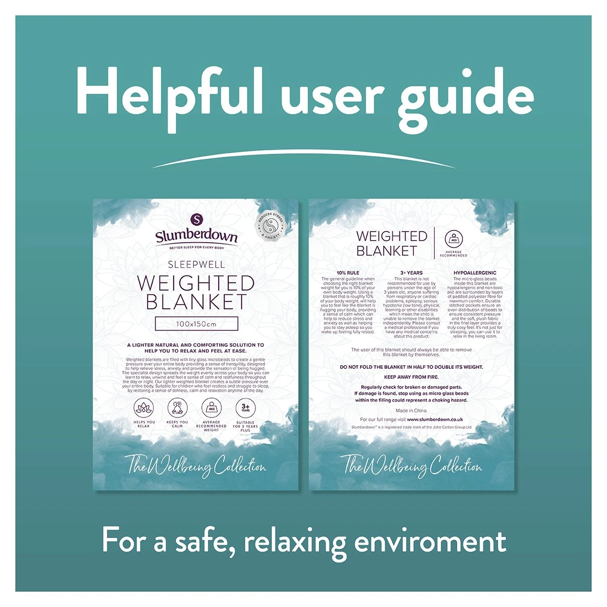 At Slumberdown, we believe everybody deserves a better night's sleep. The Slumberdown 7kg Weighted Blanket is part of our Wellbeing range and is ideal for anytime of the day or night. Weighted blankets are known to help improve sleep quality and can be used to relive stress and anxiety. The lovely soft blanket is filled with glass microbeads creating a gentle pressure over your entire body giving the sensation of being hugged, this allows you to relax, unwind and feel a sense of calm and restfulness. Made in the UK.