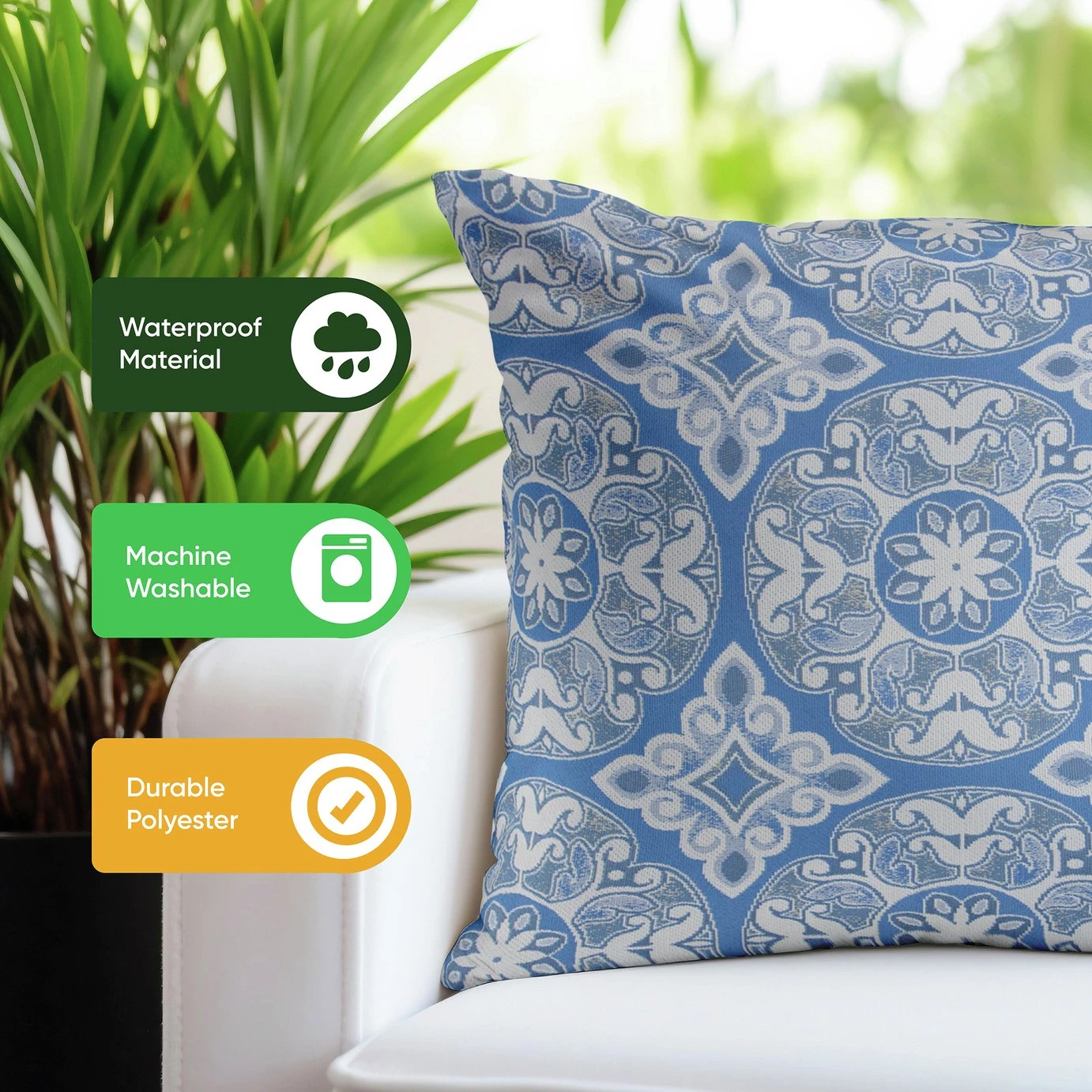 These vibrantly printed outdoor cushions will definitely brighten up your garden space. They're made from a water resistant and durable polyester, so you don't have to worry about them if you have accidentally left them outside. That said, these cushions can also be used inside your home, your conservatory and when you're out on a caravan or motorhome holiday.